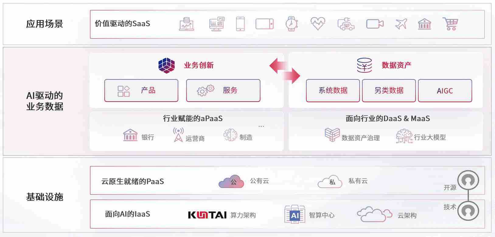 数字时代,,,,围绕企业数字化转型的关键要素,,PA视讯游戏数码开创性的提出数云融合战略和技术体系框架,,,着力在云原生、、数字原生、、AI原生和信创产业上架构产品和服务能力,,为处在不同数字化转型阶段的快消零售、、汽车、、、、金融、、医疗、、、政企、、教育、、运营商等行业客户提供泛在的敏捷IT能力和融合的数据驱动能力,,构建跨界融合创新的数字业务场景和新业务模式,,,助力企业级客户建立面向未来的核心能力和竞争优势,,全面推动社会的数字化、、智能化转型升级。。